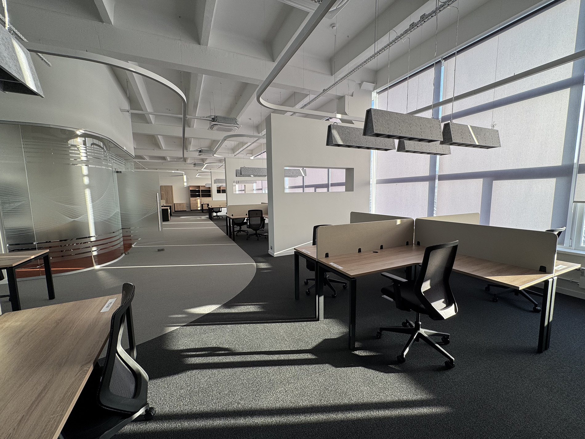 Пространство спроектировано за счет собственных средств НИИТМ и с учетом современных требований к рабочим зонам: в нем сочетаются отдельные кабинеты, открытые офисные зоны (open space) и переговорные комнаты разного размера. Масштабная модернизация затронула не только интерьер: было обновлено фасадное остекление и полностью заменены все инженерные коммуникации.