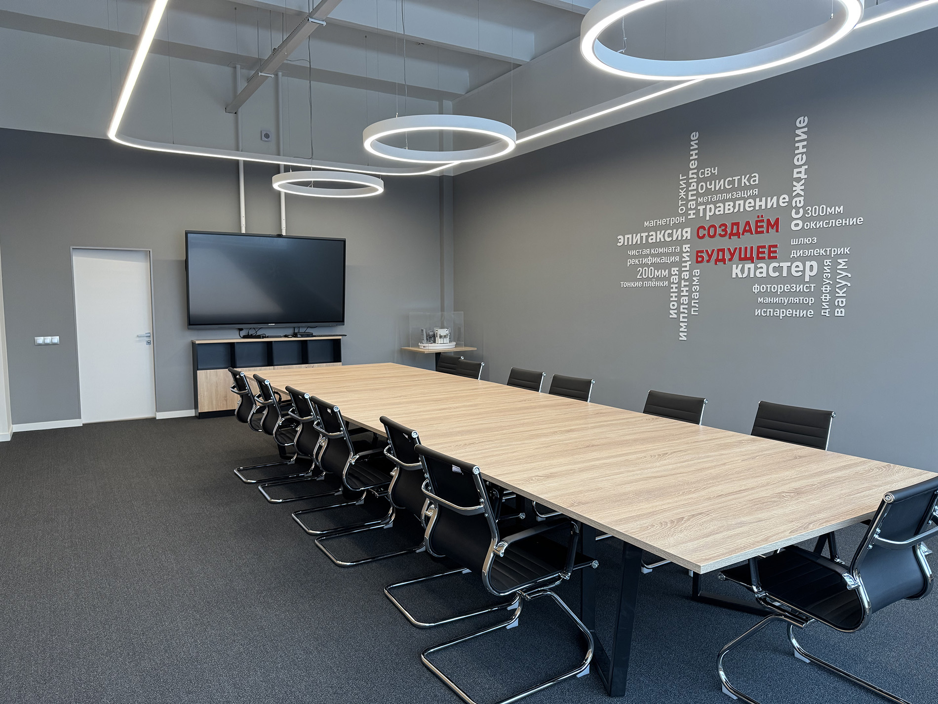 В Центре работает семь ключевых подразделений института. Инженеры, конструкторы, программисты и другие специалисты взаимодействуют напрямую. Сегодня здесь трудятся более 100 сотрудников, включая специалистов новых направлений разработки оборудования: роботизированных систем и ионной имплантации. При этом проект Центра учитывает будущий рост компании – в него заложена возможность разместить еще больше сотрудников, что соответствует стратегии развития кадрового потенциала предприятия.